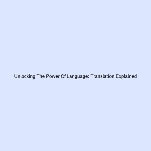 Unlocking the Power of Language: Translation Explained