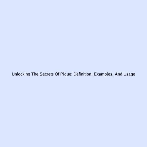 Unlocking the Secrets of Pique: Definition, Examples, and Usage