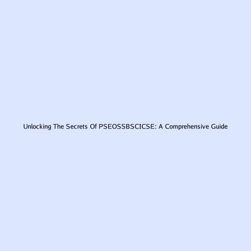 Unlocking the Secrets of PSEOSSBSCICSE: A Comprehensive Guide