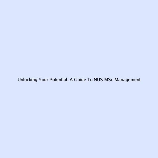 Unlocking Your Potential: A Guide to NUS MSc Management