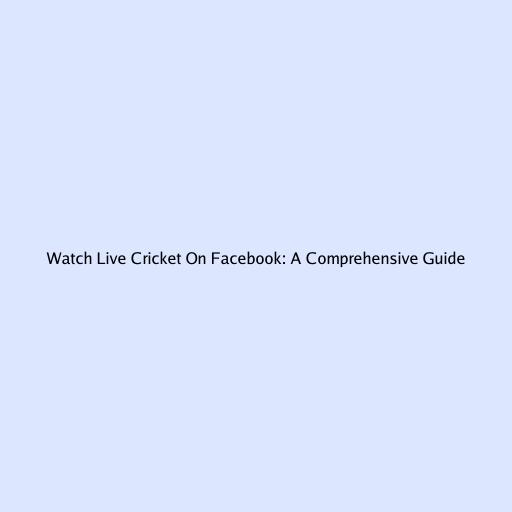 Watch Live Cricket On Facebook: A Comprehensive Guide